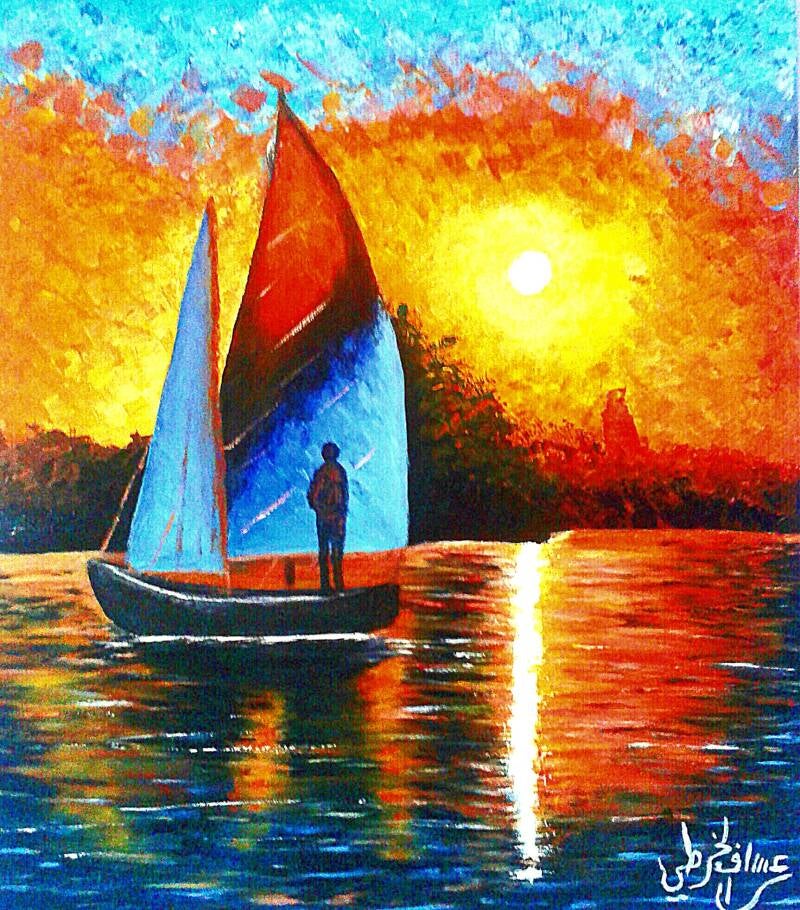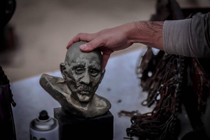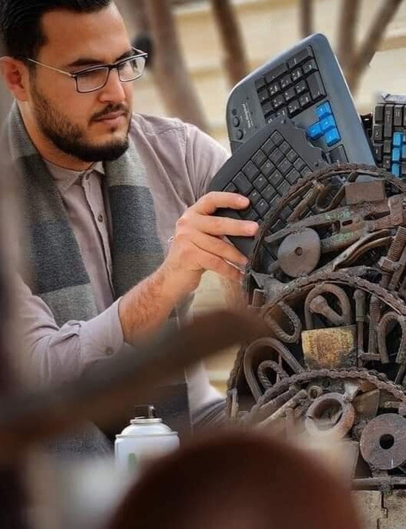 Assaf Mousa Ahmed Alkhrati - a self-taught artist from Gaza, born in 1994, Assaf's journey is one of exploration and self discovery. His art connects him deeply to his work, blending his inner self, tools, colors, and materials, creating an extraordinary link that shapes his unique expression. Art for me is an intricate relationship between the artist and their creation-a fusion of spirit, self, and senses, all converging in each piece.' Recently, Assaf has delved into scrap metal art, crafting sculptures from discarded iron, nails, bolts, and more. Through welding and assembling, he breathes new life into these materials, drawing inspiration from both his local culture and the cinematic world.