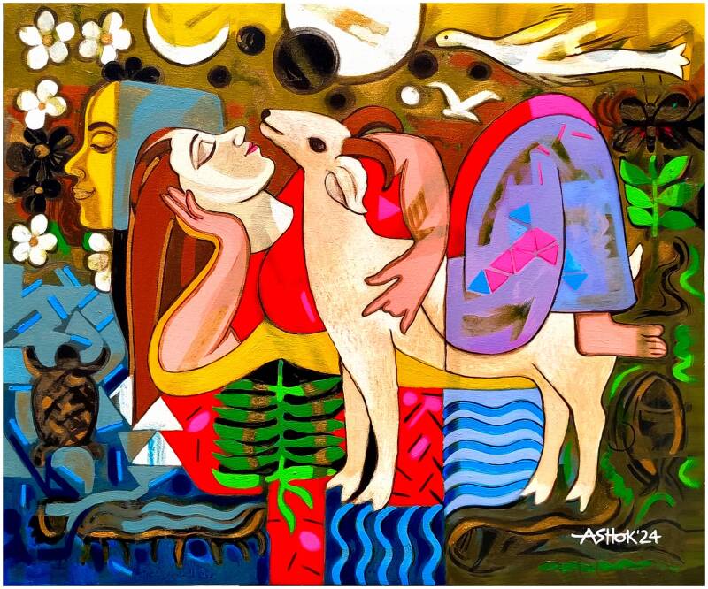 What we indulge or experience in the surrounding nature with positive vibes and thoughts are usually creating ecstasy in our minds. He depicts the semifigurative human form with the relevant combination of nature and other organisms in his creation to explain the high consciousness and spirituality. He has participated in major national and international workshops, festivals, Art residencies, and many exhibitions around the world, including France, Peru, Germany, China, Thailand, Malaysia, Argentina, Brazil, Chile, Norway, Poland, Egypt, Bangladesh, Nepal, Reunion, Mexico, Venezuela, Russia, Jordan, Turkey, Philippines, Indonesia, Mauritius, Italy, Iran, Taiwan, South Korea, South America and the USA, etc. Remarkably, he has participated in the numerous international online art exhibitions 2020 – 2021 – 2022 – 2023 - 2024- 2025. He keeps his spirit high with the great value of art and culture of India as well as the global.